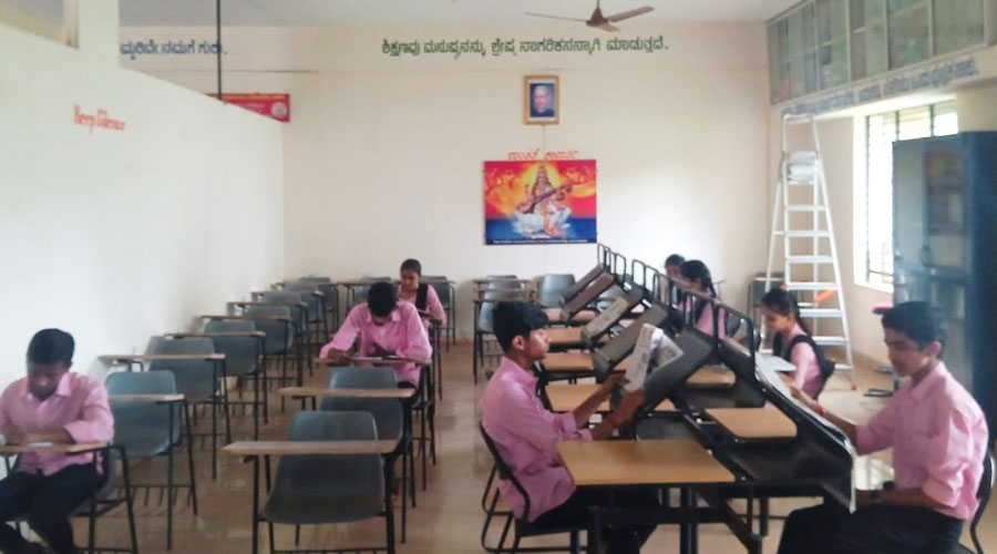 The Book collection varies from Text books, Reference books, General knowledge books , Encyclopaedia, Year book, books related to competitive examination, story books, Literature books. We have Books in different languages too such as Hindi, English, Kannada and Sanskrit. A beautiful collection of Dictionary, grammar related books and books written by famous authors and poets are available too. News papers, Magazines, journals, periodicals are procured to the library to enhance the knowledge of readers. Syllabus related question papers, question banks are available in the library.