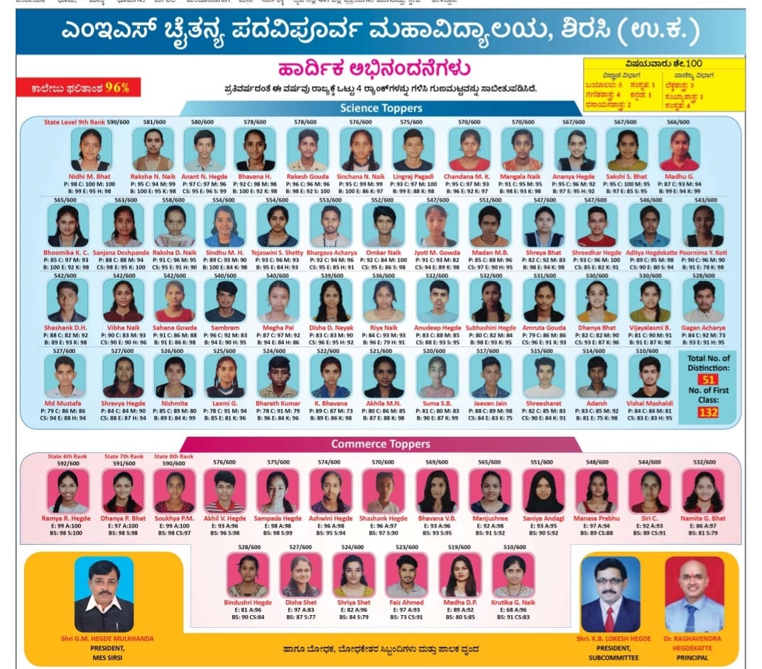 Congratulations to Rajata M Hegde on achieving 3rd Rank at the state level and securing the 1st Rank in the district for Batch 2022-23.